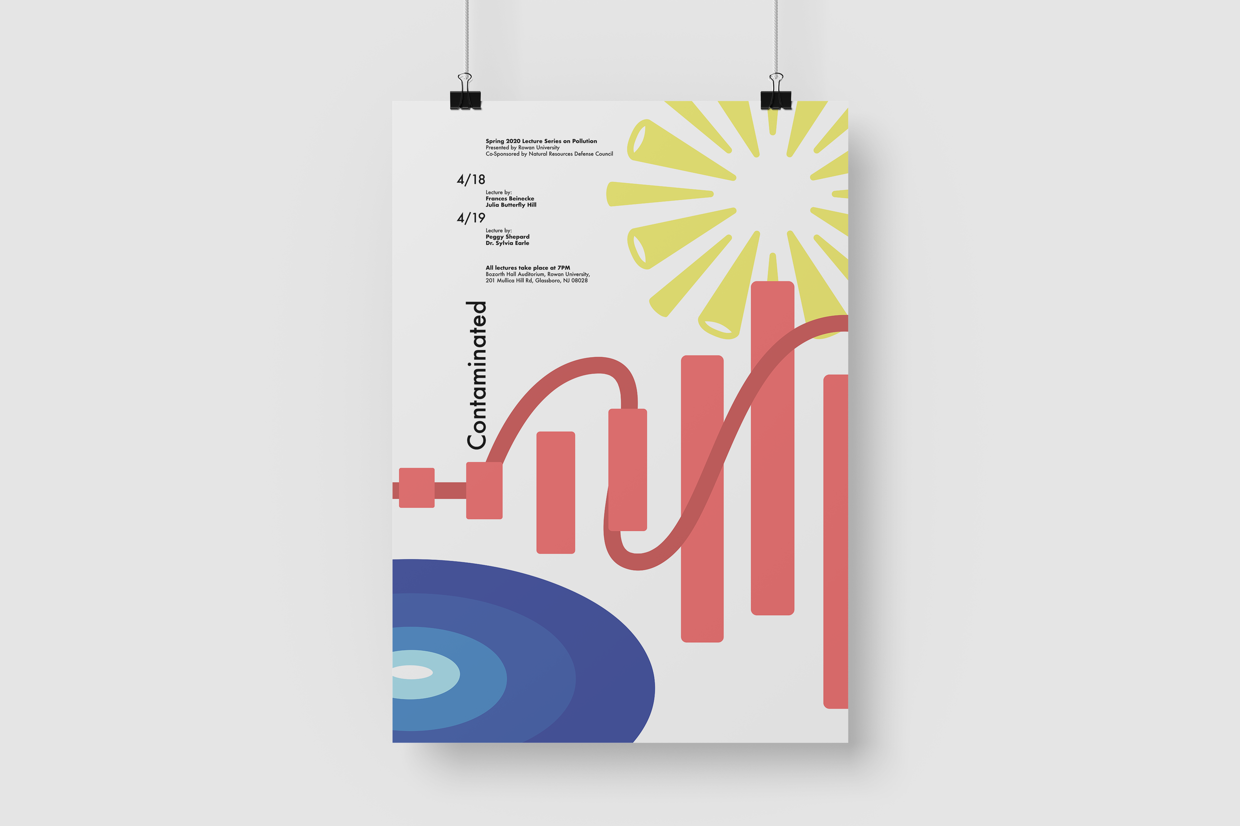 Contaminated is the title of a conceptual public talk, aimed to spread the awareness of various types of pollutions which include sound, light, water, air, and thermal pollution. Simplistic and abstract icons are used to represent each type of pollution. For this project, I wanted to aim for a clean and straightforward approach, hence the use of vibrant colors against the white background throughout the video.